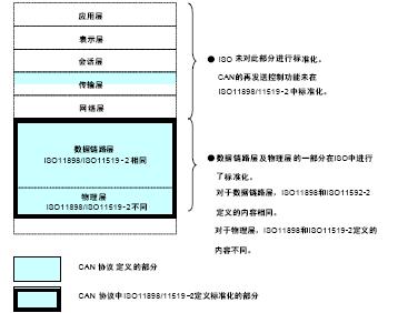 圖6 表示CAN 協(xié)議和ISO11898 及ISO11519-2 標(biāo)準(zhǔn)的范圍。