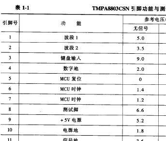 - TMPA8803 CH08T0601引腳功能及電壓資料