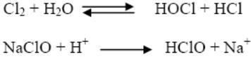用氯處理水有很多方法包括:溶解氯氣(Cl2),次氯酸鈉(NaOCl),次氯酸鈣(Ca(OCl)2);無論哪種方法,都是基于氯氣被水解或者次氯酸鹽被酸化,而產(chǎn)生次氯酸。