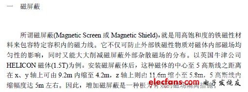 磁體是磁共振成像(Magnetic Resonance Imaging MRI)系統(tǒng)的重要組成部分無論是超導(dǎo)磁體還是永磁體或常導(dǎo)磁體其作用都是為MRI 設(shè)備提供靜磁場(chǎng)B0 但是由于它的磁力線將向空間各個(gè)方向散布即形成所謂的雜散磁場(chǎng)就有可能干擾周圍環(huán)境中那些磁敏感性強(qiáng)的設(shè)備使其不能正常工作另一方面磁體周圍環(huán)境的變化也會(huì)影響磁場(chǎng)的均勻程度由此可見在磁共振成像系統(tǒng)中磁場(chǎng)與環(huán)境的相互影響是一個(gè)不容忽視的問題目前廣泛采用安裝磁屏蔽的辦法來解決本文首先介紹磁屏蔽的概念和分類然后討論有關(guān)磁屏蔽的計(jì)算以及制做屏蔽體可采用的最佳材料.