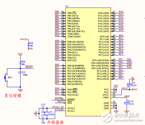 ATmega128是ATMEL公司的 8位系列單片機的最高配置的一款單片機,穩(wěn)定性極高,應(yīng)用極其廣泛。