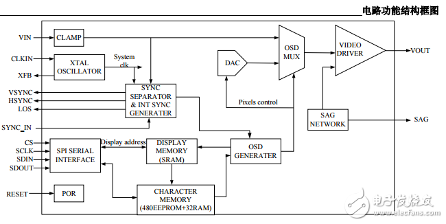 AT7456E 是一款集成了 EEPROM 的單通道、單色隨屏顯示發(fā)生器,集成了視頻驅(qū)動器、同步分離器、視頻分離開關(guān)以及 EEPROM,提高了系統(tǒng)的集成度,有效降低了系統(tǒng)成本。 AT7456E 采用符合 NTSC 和 PAL 制式的 512 個用戶可編程字符,適合于全球市場。 AT7456E 能夠方便地以任意字符、尺寸顯示各種信息,例如公司標識、常用圖形、時間、日期等。 AT7456E 預(yù)先裝載了 512 個字符和圖形,并可以通過 SPI 兼容串行接口進行在線編程。 AT7456E 提供 28 引腳 TSSOP 封裝,工作溫度范圍(-40 ℃~+85℃)。