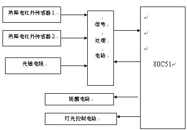 1) 傳感器信號處理部分:檢測人體輻射紅外信號及光強(qiáng)信號經(jīng)過處理后變成可處理的數(shù)字信號