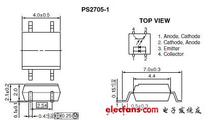 The PS2705-1 is an optically coupled isolator containing a GaAs light emitting diode and an NPN silicon