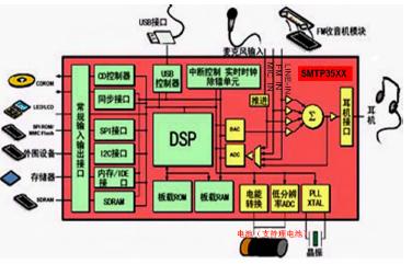 內(nèi)置DAC 可直接驅(qū)動低功率的耳機,ADC 轉(zhuǎn)換電路可將FM、MIC、LINE-IN 錄音內(nèi)容轉(zhuǎn)換成MP3,其內(nèi)部所獨有的DAC 電路可使信噪比>90DB。總諧波失真<0.05%,潔音電路, line-in 輸入/輸出信噪比>90dB。高品質(zhì)綜合音頻信號混合系統(tǒng);