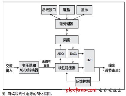 乍一看,可變直流電源設(shè)備似乎很簡(jiǎn)單。但它是一種極為復(fù)雜、準(zhǔn)確而且耐用的高負(fù)荷電子設(shè)備。無論是阻性、感性、容性、低阻抗、高阻抗、穩(wěn)態(tài)還是可變負(fù)載,電源設(shè)備都必須可靠地提供穩(wěn)定、精密和清潔的電壓和電流。在說明書中明確說明了電源達(dá)到此目標(biāo)的質(zhì)量以及在何處達(dá)到極值。根據(jù)應(yīng)用選擇適合的電源要求透徹理解電源指標(biāo)。下面介紹線性電源指標(biāo)。線性電源非常耐用、準(zhǔn)確并能提供低噪聲功率。它們簡(jiǎn)單、直接的反饋機(jī)制提供了優(yōu)秀的負(fù)載調(diào)整率和整體穩(wěn)定性。圖1示出了線性電源的簡(jiǎn)化框圖。