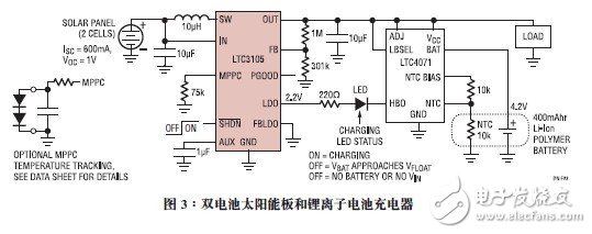 本設(shè)計要點說明了怎樣構(gòu)建一款依靠小型雙電池太陽能板工作的緊湊型電池充電器。該設(shè)計的獨特之處在于 DC/DC 轉(zhuǎn)換器運用功率點控制以從太陽能板吸取最大的功率。
