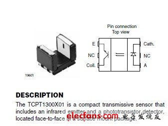 TCPT1300X01是單通道透射式傳感器,孔徑為0.3mm,縫隙寬度為3.0mm。TCUT1300X01是雙通道透射式傳感器,兩個(gè)檢波器的孔徑為0。3mm,縫隙寬度為3。0mm。這兩個(gè)傳感器的光電晶體管的輸出和工作波長(zhǎng)為950nm。