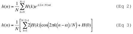 where H(k) and k = 0, 1, ... N-1 represent the ideal or targeted frequency response. The quantities h(n) and n = 0, 1, ... N-1 are the impulse responses of H(k) in the time domain, and