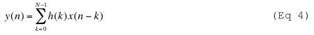 After obtaining the impulse-response coefficients using equation 3, you can implement the FIR filter using a standard digital-processing technique. That is, h(n) filters the input signal data x(n) as in equation 4: