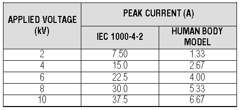 Table 5. ESD Current vs. Model and Applied Voltage