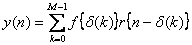 其中s(n)為傳送序列,h(k)是長度為L的通道脈沖響應,w(n)是噪聲序列。令y(n)代表耙式接收器的輸出,它共涵蓋L個系數(shù),其中只有M個fingers不等于零,再令δ(k)代表M個延遲時間,分別對應于L-tap耙式接收器響應函數(shù)f(n)的非零系數(shù),那么: