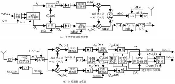 直接序列擴(kuò)頻(DS)是將信號(hào)頻譜在頻率域擴(kuò)寬,從而降低空中傳輸信號(hào)的功率譜密度,使敵方對(duì)抗