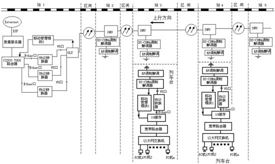本文針對(duì)鐵路點(diǎn)多、線長(zhǎng),站點(diǎn)分布較散,呈線形分布等特殊情況,充分利用鐵路現(xiàn)有的SDH有線傳輸設(shè)備SBS622,通過(guò)設(shè)計(jì)的固定在火車(chē)站上的基地臺(tái)與高速列車(chē)上的移動(dòng)臺(tái)之間的無(wú)線接口以及加頂圓盤(pán)天線等技術(shù),實(shí)現(xiàn)了鐵路高速列車(chē)互聯(lián)網(wǎng)絡(luò)DS-CDMA無(wú)線傳輸系統(tǒng)。