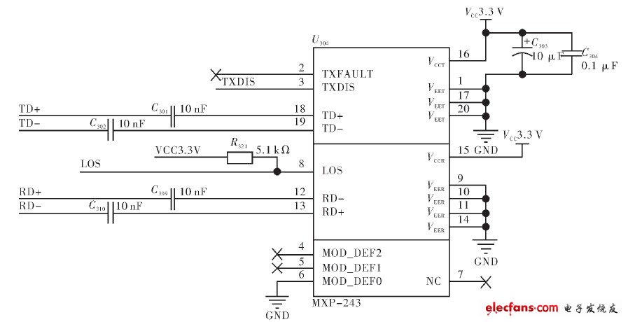 LED或激光發(fā)射器上,通過光纖傳輸到光接收單元,在這里先前的數(shù)字信號被一個(gè)內(nèi)部的數(shù)-模轉(zhuǎn)換器重新轉(zhuǎn)化為模擬基帶視頻信號。這樣,系統(tǒng)在電氣上完全透明地將光發(fā)射器的視頻輸入通過光纖發(fā)送到了光接收單元的視頻