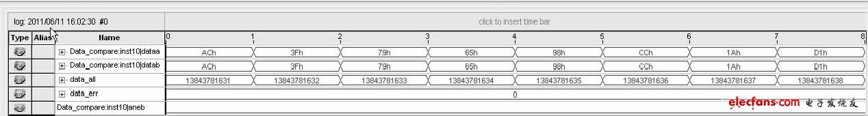 圖12是數(shù)據(jù)收發(fā)誤碼測(cè)試的仿真波形圖。data_all是到當(dāng)前時(shí)鐘為止已測(cè)試的數(shù)據(jù)總量,data_err是到當(dāng)前時(shí)鐘為止傳輸錯(cuò)誤的數(shù)據(jù)總量,可以看出,在傳輸了百億個(gè)數(shù)據(jù)后,誤碼仍為零。