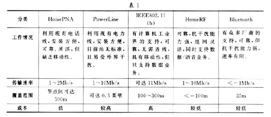 總的來(lái)講,IEEE802.11比較適于商業(yè)環(huán)境下的無(wú)線網(wǎng)絡(luò),藍(lán)牙技術(shù)適合于移動(dòng)設(shè)備之間的互連,而HomeRF則適合家居環(huán)境中的通信。表1比較了這幾種技術(shù)的特點(diǎn)。