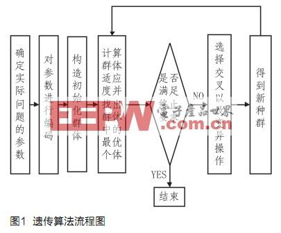 遺傳算法是一種新近發(fā)展起來(lái)的搜索最優(yōu)化算法[2~5]。遺傳算法從任意一個(gè)的初始生物種群開(kāi)始,通過(guò)隨機(jī)的選擇、交叉和變異操作,產(chǎn)生一群擁有更適應(yīng)自然界的新個(gè)體的新一代種群,使得種群的進(jìn)化趨勢(shì)向著最優(yōu)的方向發(fā)展。圖1中所示的是標(biāo)準(zhǔn)的遺傳算法的流程框圖。
