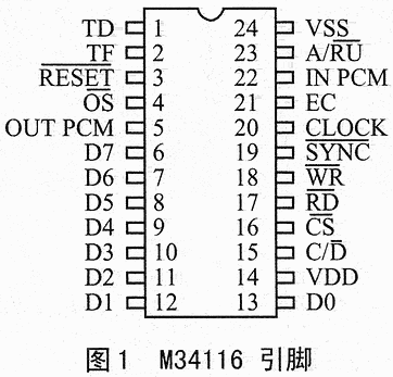 M34116為24引腳雙列直插封裝,引腳如圖1所示。
