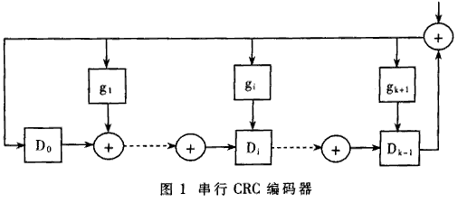 下文用"+"表示按位模2和運算,"{,}"表示鏈接運算。從CRC的(1)式很容易得出以下算法: