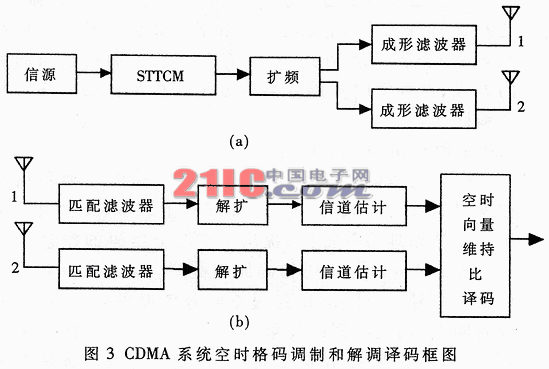 本文把空時(shí)編碼技術(shù)引入多碼多載波CDMA 系統(tǒng)(MC-MC-CDMA),系統(tǒng)通過分集技術(shù)有效地增加了信道容量,降低了傳輸錯(cuò)誤。給出了空時(shí)編碼結(jié)合MC-MC-CDMA 系統(tǒng)的系統(tǒng)方案(包括發(fā)射機(jī)