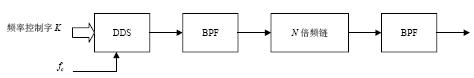綜合考慮各個(gè)方案的優(yōu)缺點(diǎn),采用了一種DDS加倍頻鏈的合成方法,研制了105 跳/s的寬帶超高速頻率