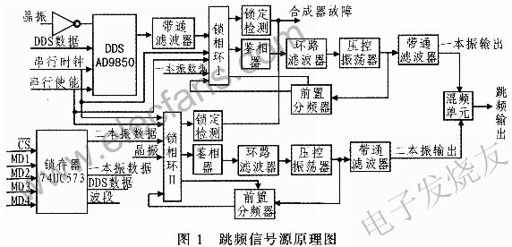 1 設(shè)備開發(fā)預(yù)研,綜合測(cè)試系統(tǒng)研制的瓶頸。本設(shè)計(jì)正是某機(jī)載電臺(tái)綜合檢測(cè)儀的一部分,為其提供一個(gè)高穩(wěn)定度的跳頻信號(hào)源。