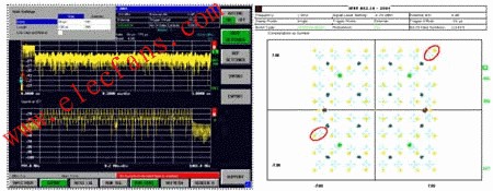 圖4 在FSQ上進行WiMAX頻譜和星座圖測試界面