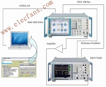 R&S為WIMAX功放測試提供了快速、準確的解決方案。測試設(shè)置如圖3所示,主要包括3部分: