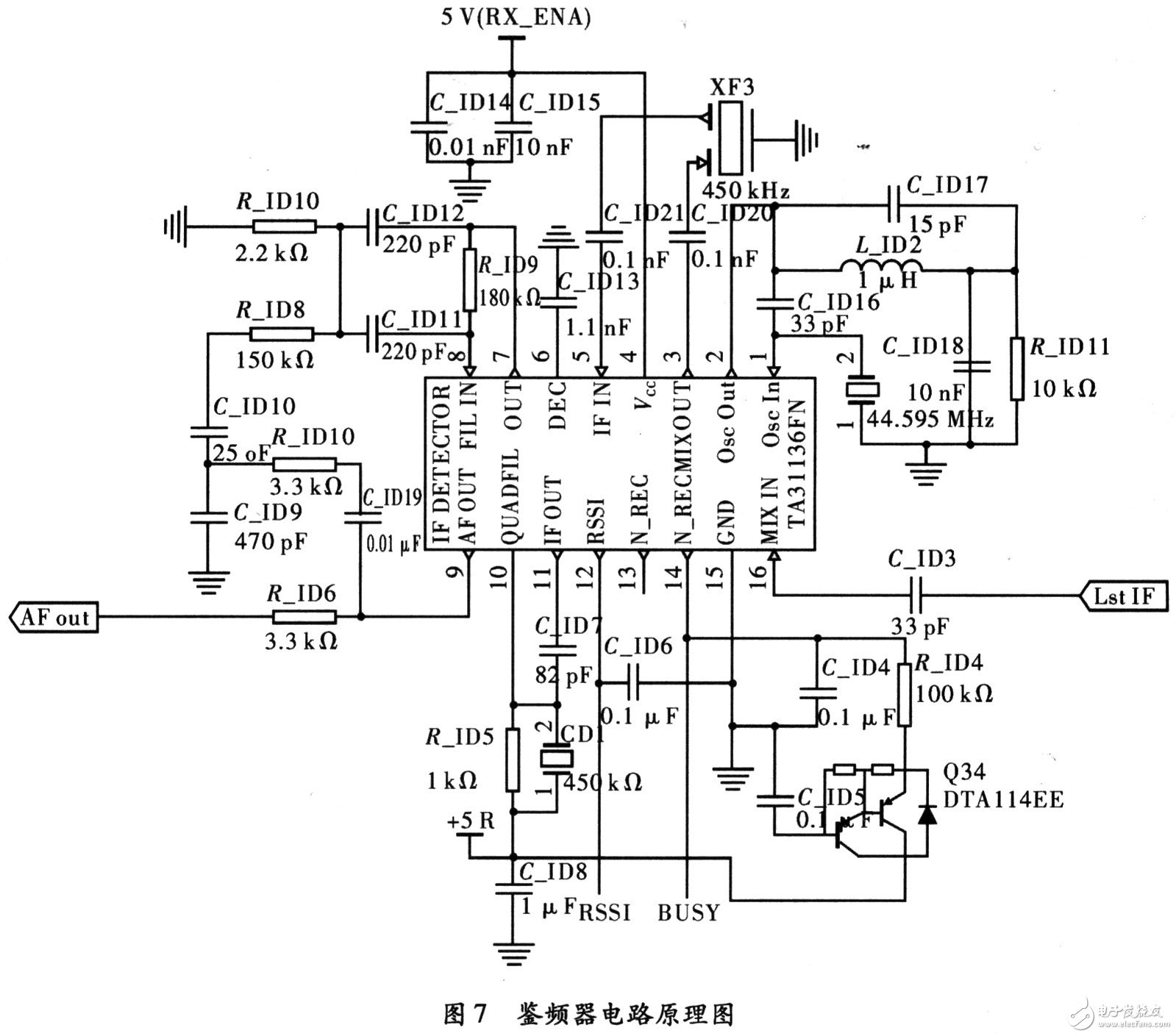 因此,文中提出一種專門針對DMR系統(tǒng)的接收機(jī)設(shè)計,對射頻信號采用兩次下變頻,先后得到45.05 MHz和455 kHz的兩個中頻信號,最后再由鑒頻芯片TA31 136解調(diào)得到語音信號。本方案具有成本低,性能良好,接收分辨率高,覆蓋范圍廣等優(yōu)點,已成功應(yīng)用在我們開發(fā)的DMR數(shù)字終端設(shè)備上。