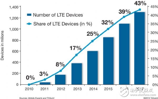 當(dāng)更多的LTE裝置來臨時(shí),會(huì)促使基礎(chǔ)建設(shè)投資大幅增加。目前,全球各地的業(yè)者已啟動(dòng)了200個(gè)以上的LTE網(wǎng)路,而計(jì)劃中的數(shù)量更多。變換至4G的速度將比當(dāng)年業(yè)界進(jìn)入3G服務(wù)的速度要快許多。舉例而言,在亞太區(qū)域,LTE預(yù)計(jì)在2018年涵蓋其人口數(shù)的一半。