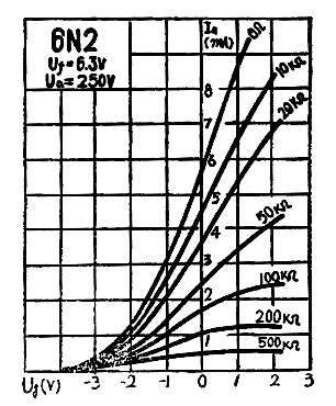 柵負(fù)壓確定后,可在電子管屏極特性曲線上作出靜、動(dòng)態(tài)負(fù)載線,并在其工作點(diǎn)上求出Ri、S、μ分貝值。若Ri與上面的設(shè)定值相差很大,則R’a應(yīng)重新計(jì)算。