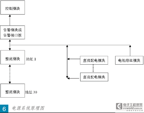 系統(tǒng)的工作原理是整流模塊把交流輸入變成直流輸出,然后送到由匯流排并聯(lián)的直流配電模塊和電池熔絲模塊,經(jīng)配電模塊內(nèi)部分路開(kāi)關(guān)或熔絲輸出,向負(fù)載供電,同時(shí)亦對(duì)電池充電。當(dāng)市電中斷時(shí),由電池向負(fù)載供電??刂颇K通過(guò)RS485與告警模塊及整流模塊通訊。而數(shù)據(jù)測(cè)量、采集則由告警模塊負(fù)責(zé),其對(duì)象包括市電、直流配電模塊、電池熔絲模塊和電池等。系統(tǒng)工作時(shí),控制模塊監(jiān)視系統(tǒng)的各種狀態(tài),調(diào)整其參數(shù),自動(dòng)執(zhí)行預(yù)定的各項(xiàng)任務(wù),系統(tǒng)異常時(shí)發(fā)出告警信號(hào),經(jīng)由告警模塊輸出并顯示在控制模塊上。