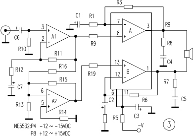 =13.63636302947998px]話筒功放電路[size=13.63636302947998px],外圍元件少,制作簡單,音質卻出乎意料的好。采用一塊雙路音頻放大集成電路。其主要特點是效率高、耗電