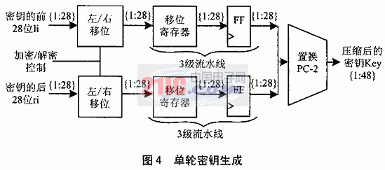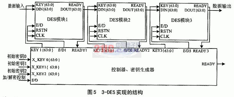 在不對(duì)原有應(yīng)用系統(tǒng)作大的改動(dòng)的情況下,3-DES算法有了很大的生存空間,被大量用來(lái)替換已不安全的DES算法。那么該如何采用FPGA進(jìn)行3-DES算法的高速設(shè)計(jì)呢?