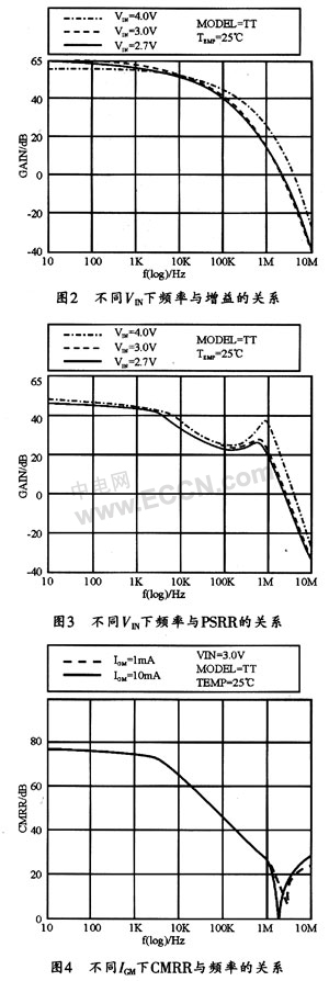 設(shè)計了一款高增益、寬帶寬、輸出擺幅可控制的新型誤差放大器。通過新增A2 、A3 兩個比較模塊,誤差放大器的輸出擺幅可以隨著控制端輸入電壓Vr 的不同進行調(diào)整,增加了電路應用