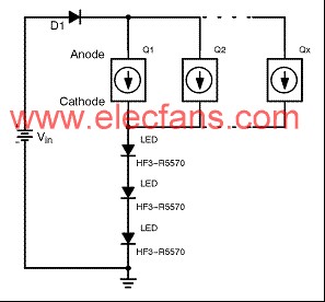 采用固定電壓電源供電的電阻是最簡(jiǎn)單、最低成本的穩(wěn)流方法。實(shí)際上,它們并不穩(wěn)流,只是在 LED 正向電壓變化及源電壓變化并導(dǎo)致電流變化從而引起亮度變異時(shí),簡(jiǎn)單地限制最大電流。對(duì)于低電流指示器應(yīng)用而言,這可能可以接受,但隨著電流增大及串聯(lián)的 LED 數(shù)量增加,就變得有問(wèn)題了。要克服這個(gè)問(wèn)題,需要費(fèi)錢(qián)又費(fèi)時(shí)地對(duì) LED 進(jìn)行編碼及選擇恰當(dāng)?shù)碾娮鑱?lái)匹配 LED 串正向電壓。即使采取這些步驟,仍然會(huì)有由輸入電壓變化導(dǎo)致的亮度變化問(wèn)題。