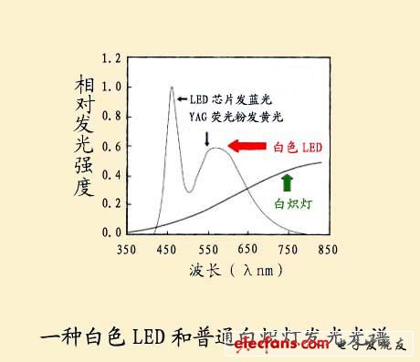 對(duì)于普通照明而言,人們需要的主要是白色的光源。1998年發(fā)白光的LED開(kāi)發(fā)成功。這種LED是將GaN芯片和釔鋁