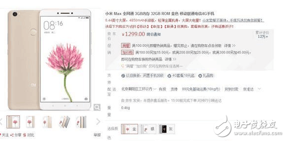 小米Max作為小米今年推出的一款大屏手機(jī),它擁有6.44寸的1080P屏幕,而且還支持陽光屏,顯色很不錯,當(dāng)然內(nèi)置也不錯,使用了驍龍650處理器,并配上3G+32G存儲組合,可以滿足我們?nèi)粘5氖褂眯枨螅易畲蟮牧咙c就是4850mAh的大電池,真的是做到了大屏長續(xù)航!如今狂降到1299元,確實少見!