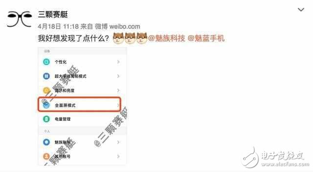 近期,微博網友@三顆賽艇就曝光了一張疑似魅族手機設置界面的截圖,同時還@了魅族科技和魅藍手機的官方微博。而截圖中居然出現(xiàn)了“全面屏模式”選項,這或許意味著魅族正在研發(fā)全面屏的手機,而且在系統(tǒng)層面已經獲得了一定的成果。