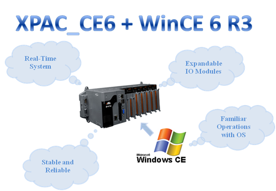 Here comes the new version of XPAC_CE6 which is reliable and has real-time capability. This version has the latest Windows CE 6.0 R3 as it OS Kernel, and adds Professional Version of CE 6.0 for users to have more familiar experience as desktop PC. Besides, XPAC_CE6 has integrated versions of different languages into one multi-language version which becomes convenient to select the desired language. XPAC_CE6 adopts X86 CPU to provide fast floating-point processing and high capacity storage memory. Also the graphics capability that is required in HMI systems is fully satisfied and hardware upgrade and software compatibility are no longer problems with the open common X86 instruction sets. Putting reliability, stability, fast-response and convenience together, combined with expandable, plenty of I/O modules, XPAC_CE6 definitely becomes a powerful weapon in the field of automatic control.
