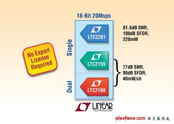 凌力爾特公司 (Linear Technology Corporation) 非常高興地宣布三款新的 16 位 20Msps ADC 擁有出口管制分類號(hào) (ECCN) 3A991,因此這些器件無(wú)需美國(guó)的出口許可證,就可向中國(guó)、俄羅斯以及其他有關(guān)國(guó)家供貨。