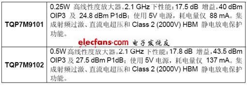 特點(diǎn)TQP3M9036具有高線性度、超低噪聲增益塊放大器,采用2x2mm的小型表面安裝封裝。在900 MHz時,放大器通常提供19.8 dB的高功率增益、+36 dBm OIP3和0.45 dB