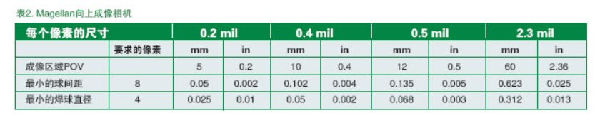 那么,對(duì)于給定器件如何選擇像機(jī)呢?這主要依賴圖 像的算法。譬如,區(qū)分一個(gè)焊球需要N個(gè)像素,則區(qū)分球間 距需要2N個(gè)像素。以環(huán)球儀器的貼片機(jī)上Magellan數(shù)碼像機(jī)為例,其區(qū)分一個(gè)焊球需要4個(gè)像素,我們用來(lái)看不同的 焊球間隙所要求的最大的像素應(yīng)該是多大,這便于我們根 據(jù)不同的器件來(lái)選擇相機(jī),假設(shè)所有的影像是實(shí)際物體尺寸的75%。