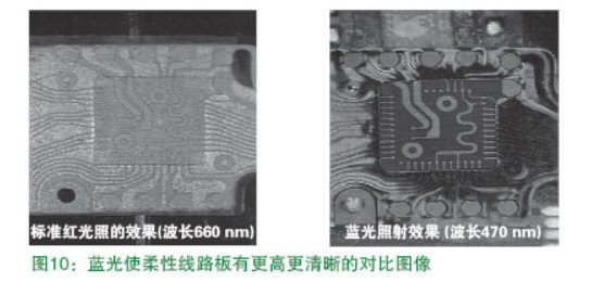 倒裝芯片基準(zhǔn)點(diǎn)(Fiducial)的影像處理與普通基準(zhǔn) 點(diǎn)相似。倒裝芯片的貼裝往往除整板基準(zhǔn)點(diǎn)外(Global fiducial)會(huì)使用局部基準(zhǔn)點(diǎn)(Local fiducial),此時(shí)的基 準(zhǔn)點(diǎn)會(huì)較小(0.15—1.0mm),像機(jī)的選擇參照上面的方 法。對(duì)于光源的選擇需要斟酌,一般貼片頭上的相機(jī)光源 都是紅光,在處理柔性電路板上的基準(zhǔn)點(diǎn)時(shí)效果很差,甚至找不到基準(zhǔn)點(diǎn),其原因是基準(zhǔn)點(diǎn)表面(銅)的顏色和基 板顏色非常接近,色差不明顯。如果使用環(huán)球儀器的藍(lán)色光源專利技術(shù)就很好的解決了此問(wèn)題。