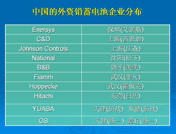 五、中國的外資鉛蓄電池企業(yè)分布