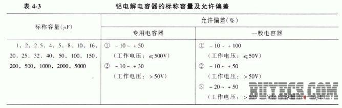 根據(jù)國家標(biāo)準(zhǔn)GB2471-81 的規(guī)定,表4-3 和表4-4 列出了一些電容器的標(biāo)稱容量系列及允許偏差。