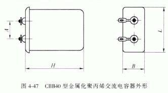 CBB40 型金屬化聚丙烯交流電容器為金屬外殼全密封結構,具有自愈特性好、電性能優(yōu)良、損耗小、交流特性好及穩(wěn)定性高等特點,適用于400Hz 交流電路。其外形如圖4-47 所示,主要特性參數(shù)見表4-76 。