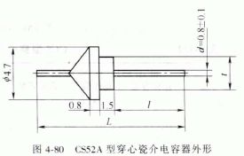 CS52A 型穿心瓷介電容器適用于電視機(jī)調(diào)諧器及其他電子設(shè)備中,其外形如圖4-80 所示,主要特性參數(shù)見表4-121 。