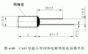 CA43F型超小型固體電解質(zhì)鈕電容器采用樹脂封裝、單向引出結(jié)構,具有體積小、性能穩(wěn)定可靠的特點,適用于航天、航空及軍用電子設備整機的直流或脈動電路,其外形如圖4-99 所示。